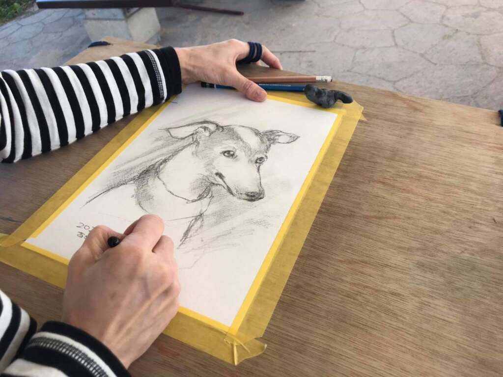 ドッグランで即描サービス(10~20分で犬の似顔絵をする)